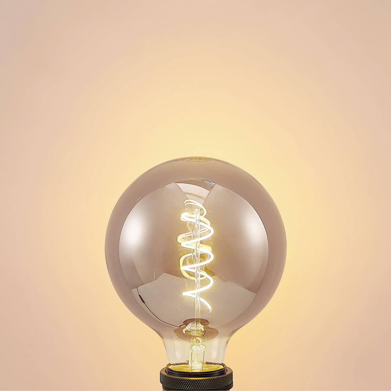 Lampada a globo E27 G125 LED 4W con vetro fumé decorativo, dimmerabile, in un pratico set da 5L'accattivante aspetto del vetro fumé incontra l'efficiente tecnologia LED. Questa lampada a globo E27 LED colpisce per il suo aspetto insolito e per la sua tecnologia a risparmio energetico. Se necessario, la lampada può essere regolata tramite un dimmer di fase leading-edge o trailing-edge ed è particolarmente adatta per apparecchi con paralume aperto o senza paralume. La lampada ha una resa cromatica particolarmente buona.Dati tecnici- Dimmerabile tramite dimmer leading-edge e trailing-edge- Classe di efficienza energetica B- Valore comparativo: 5 W- Durata di vita: 25.000 h- Cicli di commutazione: 50.000- Fattore di potenza >;
