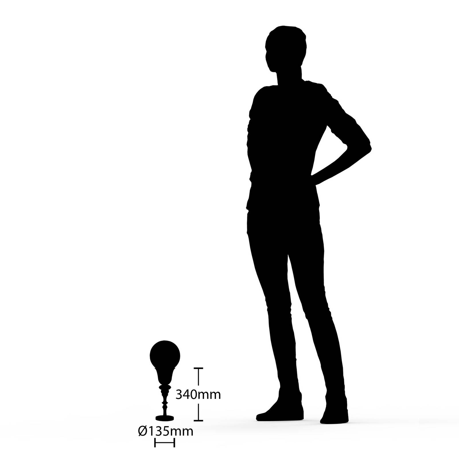 Lampada da tavolo cromata lucida Gesja dalla forma elegante - ideale come illuminazione supplementare nel soggiorno La lampada da tavolo senza paralume Gesja sa convincere con un'espressione particolarmente individuale, poiché ha la forma di un calice dalle curve barocche e combina un'aura nostalgica con una certa modernità, poiché la superficie ha una bella finitura cromata lucida. Questo gioco di contrasti rende la lampada da tavolo Gesja una fonte di luce attraente per aree di vita speciali. Per completare il look con stile, si dovrebbe scegliere una lampada in vetro G125, che ha una presenza notevole grazie alle sue dimensioni maggiori e completa perfettamente il design. La sorgente luminosa corrispondente può essere ordinata separatamente tramite gli accessori.