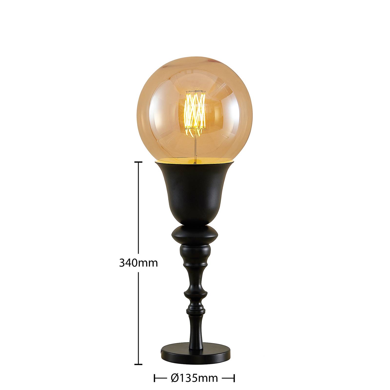 Lampada da tavolo nera Gesja con telaio a forma di tazza, per lampada a globo La lampada da tavolo Gesja ha una preziosa struttura in alluminio che ricorda un calice ed è decorata con forme barocche. La superficie, tuttavia, è mantenuta in un nero opaco e quindi la lampada combina elementi nostalgici e moderni in egual misura. Questo rende Gesja un elegante oggetto di illuminazione per molti salotti. Questa lampada da tavolo senza ombrello funziona con una lampada E27, che dovrebbe avere una forma di globo G125 per riempire completamente il calice e completare armoniosamente il quadro generale. Eleganza pura per spazi moderni! La sorgente luminosa corrispondente può essere ordinata separatamente tramite gli accessori.
