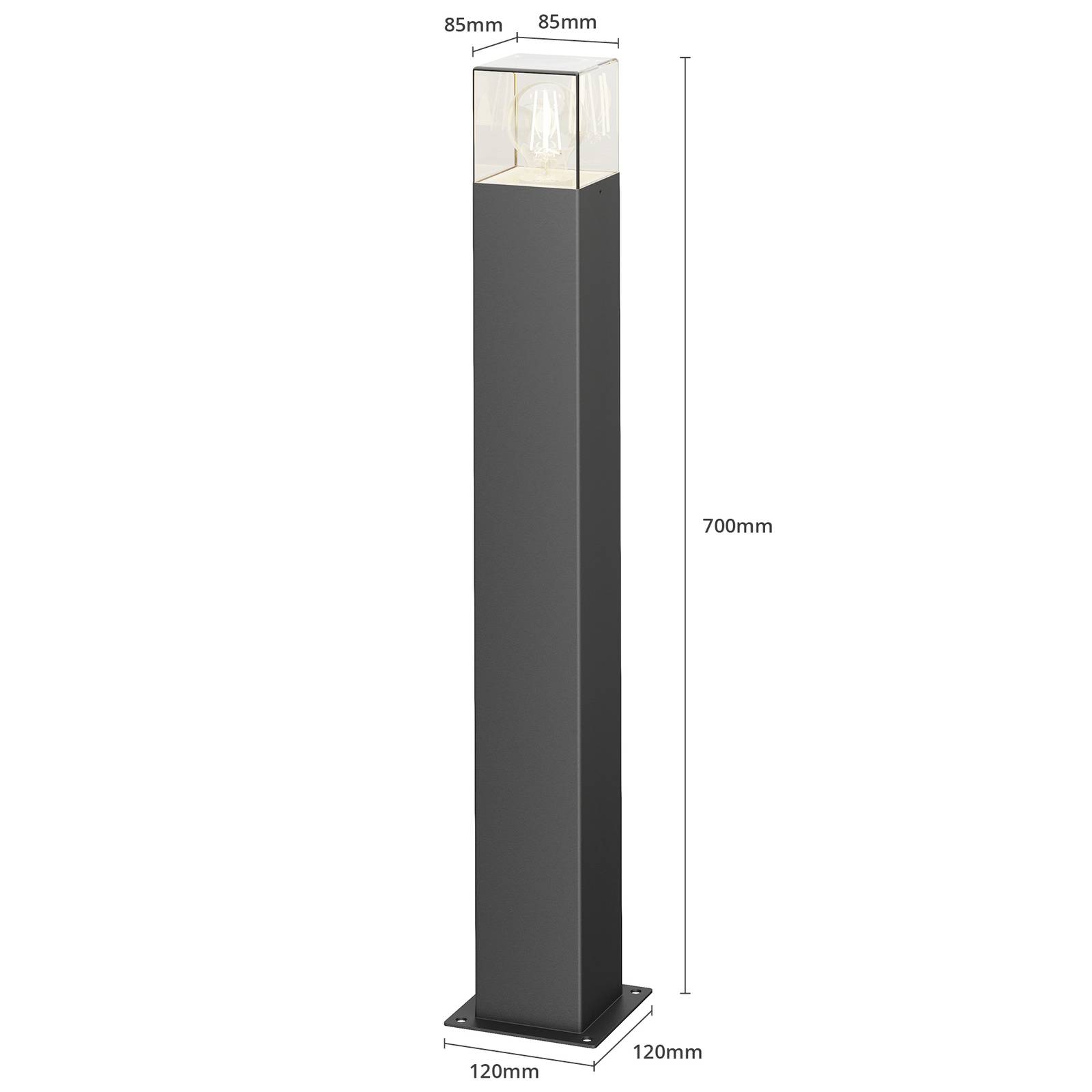 Illuminazione sicura anche in aree molto estese - apparecchio per sentieri Keke La forma moderna e angolare dell'apparecchio per sentieri Keke si adatta a molte installazioni esterne ed è quindi versatile. Convince anche per la sua struttura robusta e l'alloggiamento in alluminio grigio grafite, completato da un paralume in plastica grigio fumo. La sorgente luminosa così racchiusa diffonde una bella luce in modo sicuro e affidabile nell'ambiente circostante e fornisce una luminosità sufficiente al buio.