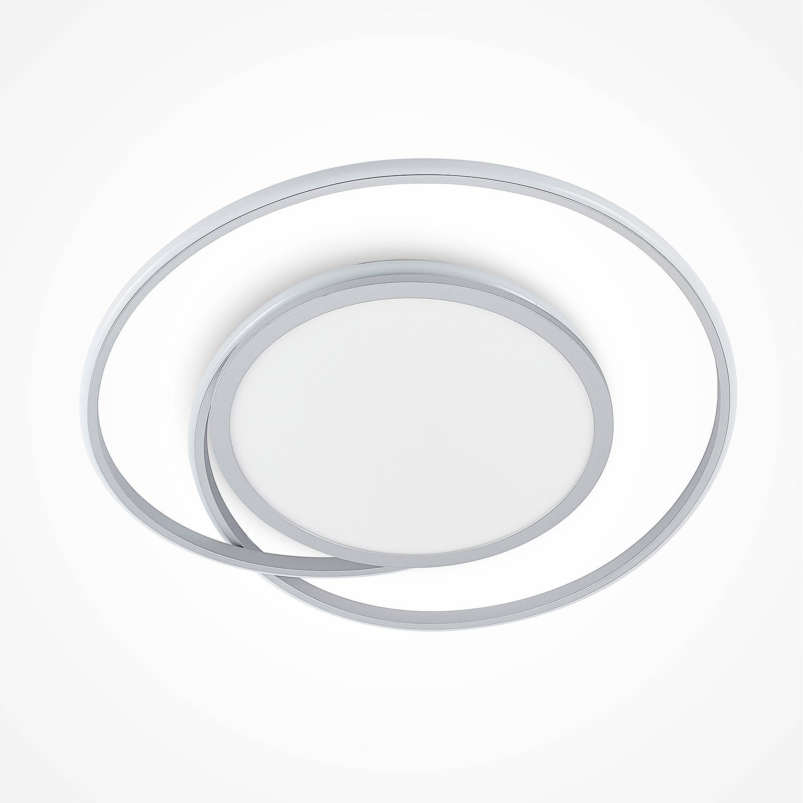 Plafoniera a LED Noud in design ampio con pratica funzione di oscuramento e cambio colore La plafoniera a LED Noud convince per il suo aspetto moderno e le sue caratteristiche funzionali. È costituito da ferro argento e alluminio ed è composto da un elemento circolare e da un sottile puntone, che si muove intorno a questa oscillazione. All'interno sono presenti dei LED installati in modo permanente, che possono essere dimmerati in modo continuo con un telecomando per quanto riguarda la loro luminosità (10% - 100%) e possono essere controllati nel loro colore della luce (2.700 K, 4.000 K e 6.500 K). Questo rende la plafoniera a LED Noud non solo un attraente oggetto decorativo, ma anche un oggetto utile e flessibile quando si tratta di illuminare gli interni. Il suo design elegante è particolarmente bello in una camera da letto o in un soggiorno e pone accenti di stile sul soffitto. Noud può essere integrato senza sforzo negli interni moderni senza mettere in ombra il resto della decorazione.
