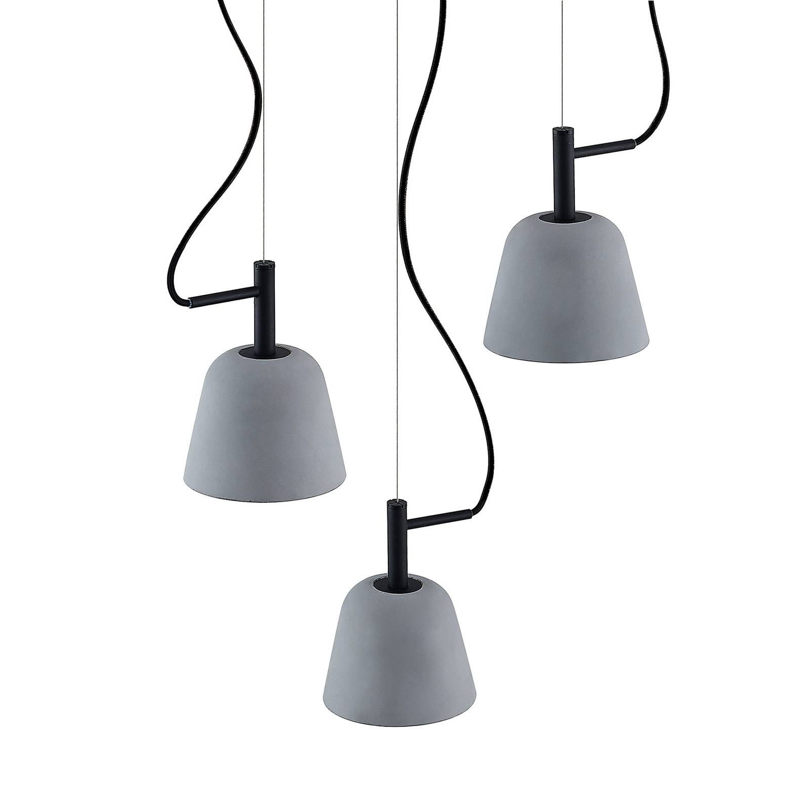 Apparecchio a sospensione orientato al design Otavis con paralumi asimmetrici in cemento Otavis è una lampada a sospensione moderna con un look speciale. Ha un montaggio a soffitto rotondo e piatto fatto di bellissimo legno di quercia, che dà al design un tocco caldo. I tre paralumi sono stati realizzati in cemento ed emettono la luce solo verso il basso, in modo da evitare l'abbagliamento. La sospensione è progettata in modo molto discreto, mentre i cavi scuri colpiscono visivamente perché sembrano pendere liberamente verso il basso, portando una certa leggerezza al concetto generale. Questo apparecchio crea un ambiente accogliente nella stanza e ha un aspetto attraente anche quando è spento.