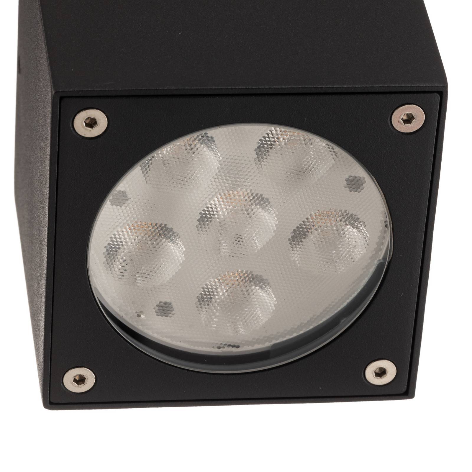 Plafoniera angolare a LED con superficie grigio grafite e LED di Cree Questa discreta lampada da soffitto a LED è adatta per coperture esterne. Sopra ingressi, terrazze e balconi, fornisce una bella luce con una temperatura di colore nella gamma del bianco caldo. Contrassegnato con la classe di protezione IP54, l'apparecchio può essere utilizzato all'esterno senza esitazione. La luce della plafoniera LED a forma di cubo è diretta verso il basso e la tecnologia LED è sinonimo di alta efficienza energetica.