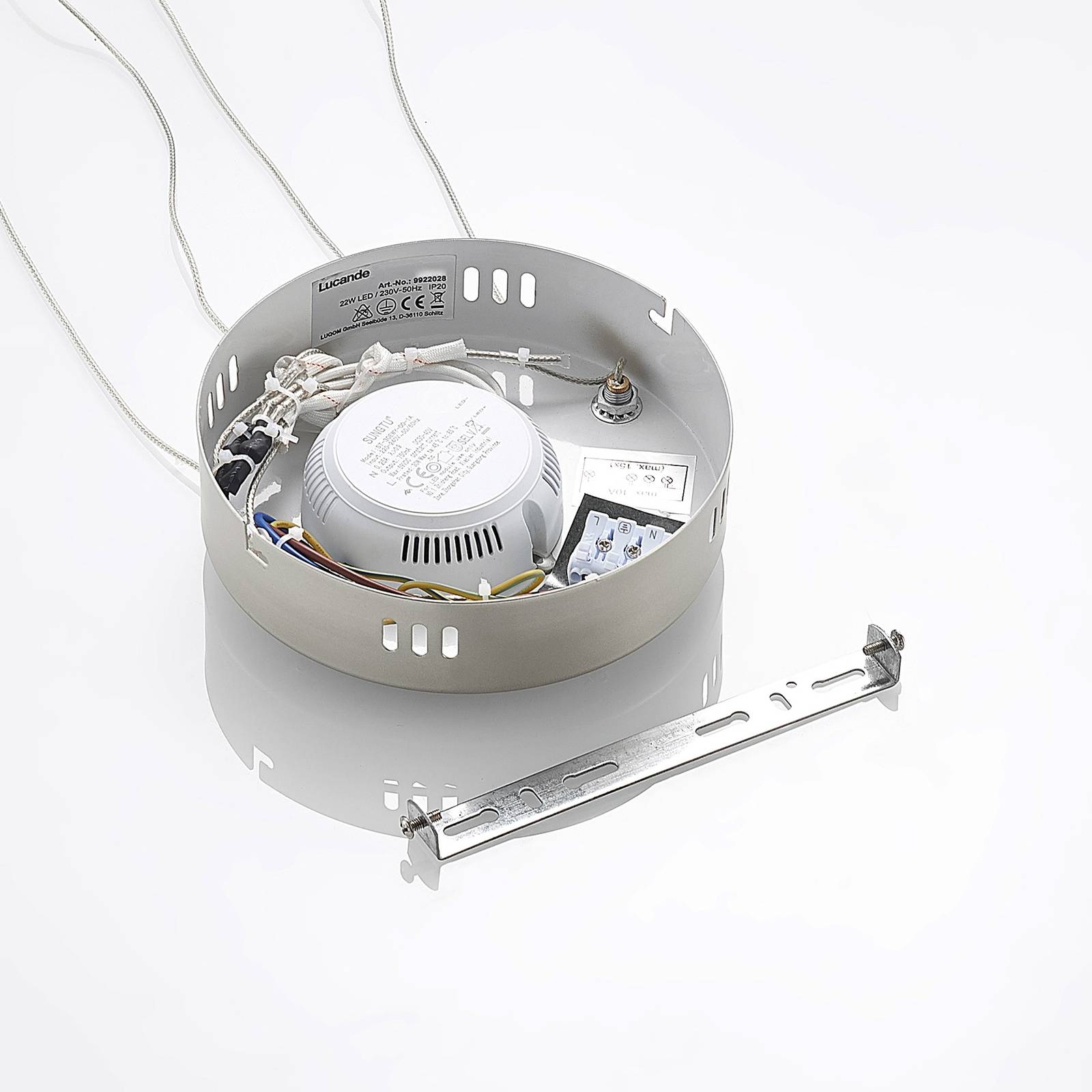 Lampada a sospensione LED Quinn - luminosità dimmerabile in tre fasi tramite interruttore a parete La lampada a sospensione LED Quinn non è adatta solo per un'illuminazione di base mirata. Il design rende la lampada un elemento d'arredo emozionante. La tonalità nichel in cui è stato progettato Quinn si integra bene in molti stili di ambienti moderni. A seconda dello stato d'animo, è possibile cambiare la luce dei LED ad alta efficienza energetica. Un interruttore a parete consente di accendere e spegnere l'apparecchio come di consueto. Grazie alla tecnologia di dimmerazione a 3 fasi con funzione di spegnimento integrata, può essere regolata su tre diversi livelli di luminosità premendo più volte l'interruttore: 100 %, 40 % e 15 %.