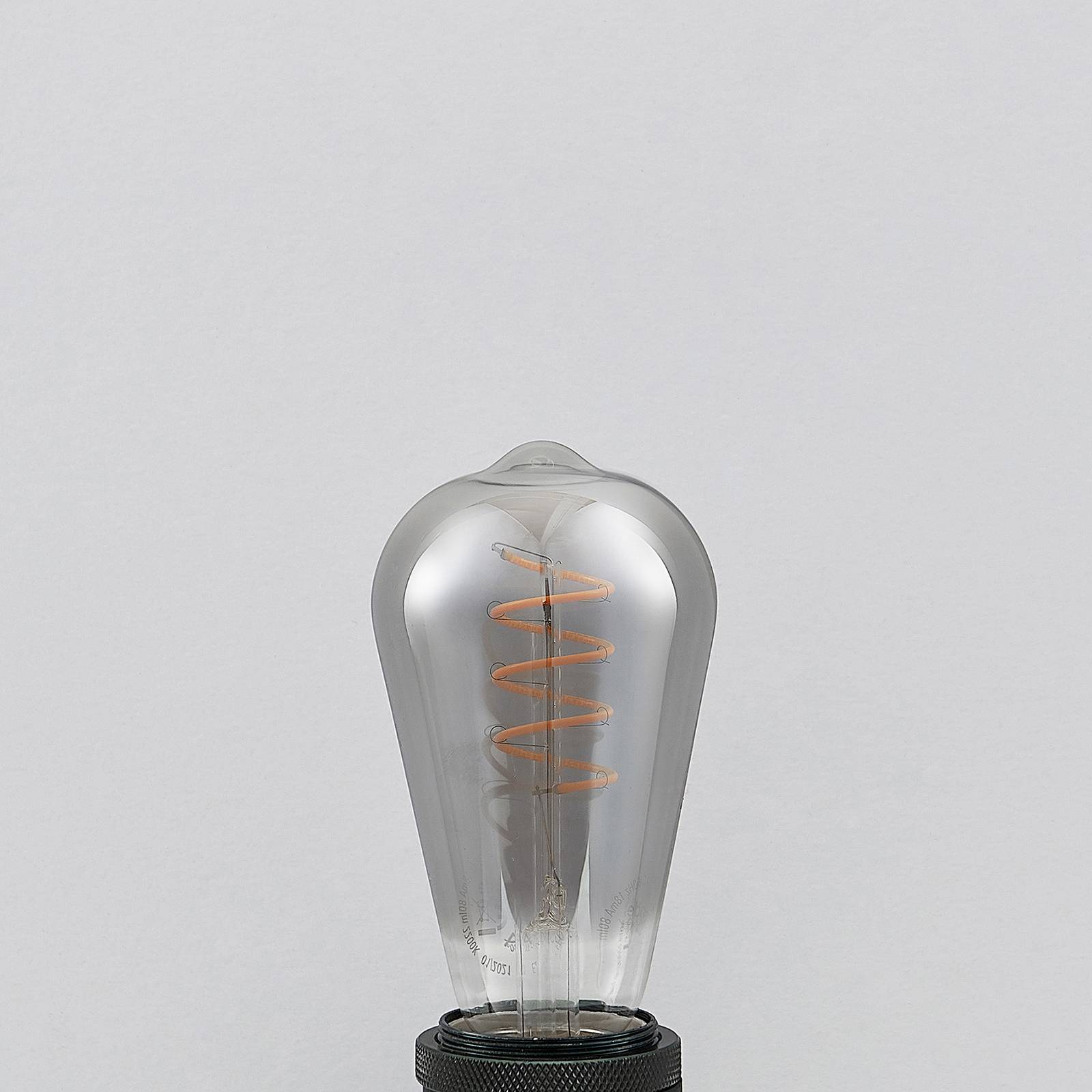 Lampada rustica E27 ST64 LED 4W con superficie color fumo, dimmerabile - in un pratico set da 5Questa lampada LED E27 ha una forma rustica nostalgica e colpisce per la superficie color fumo. I filamenti a spirale della lampada spiccano visivamente e le conferiscono un carattere speciale. Questa lampada è particolarmente adatta per l'impiego in apparecchi senza schermo o aperti e presenta un colore della luce molto caldo e una resa cromatica particolarmente buona.Dati tecnici- dimmerabile tramite dimmer a taglio di fase e a taglio di fase- classe di efficienza energetica B- valore comparativo: 5 W- durata: 25.000 h- cicli di commutazione: 50.000- fattore di potenza >;