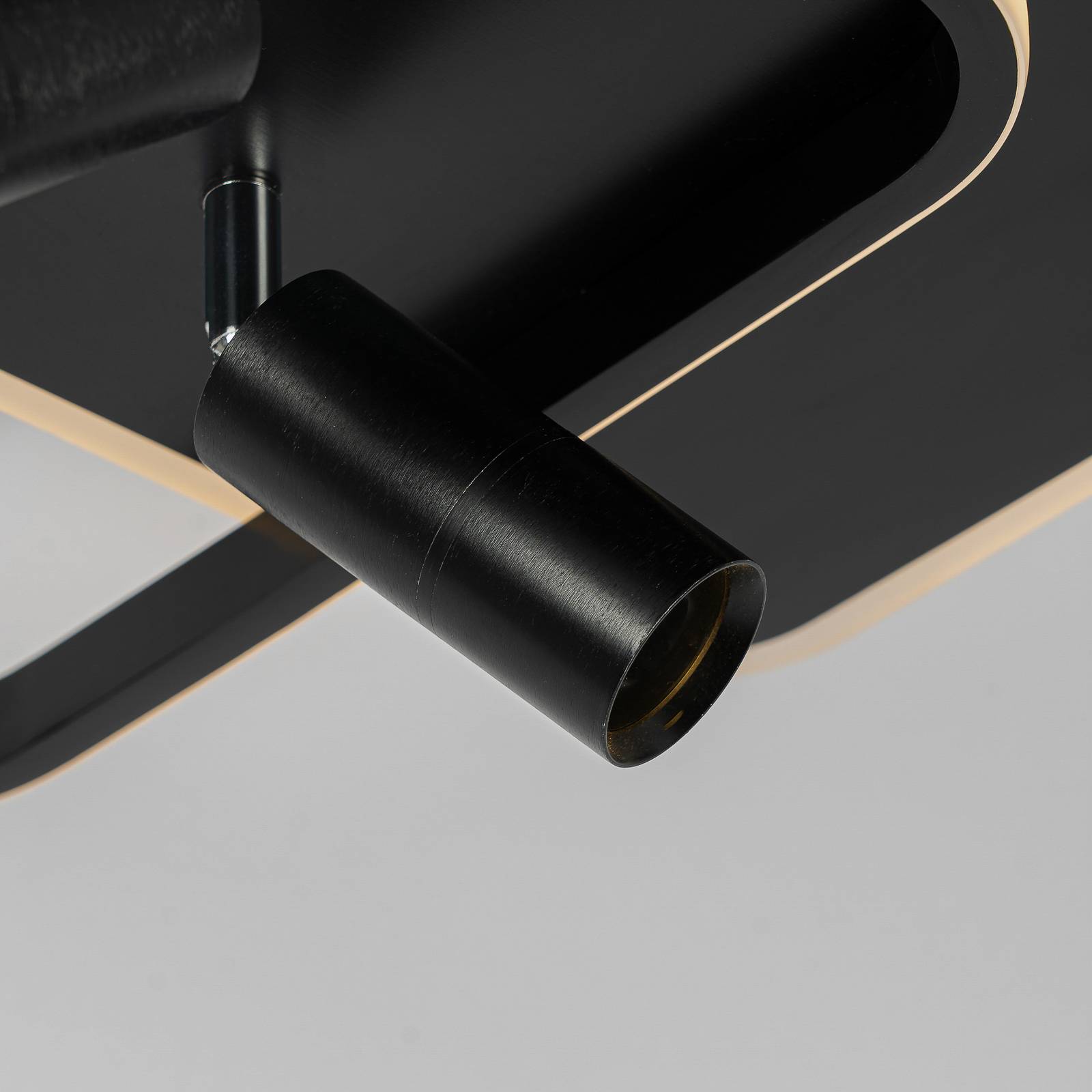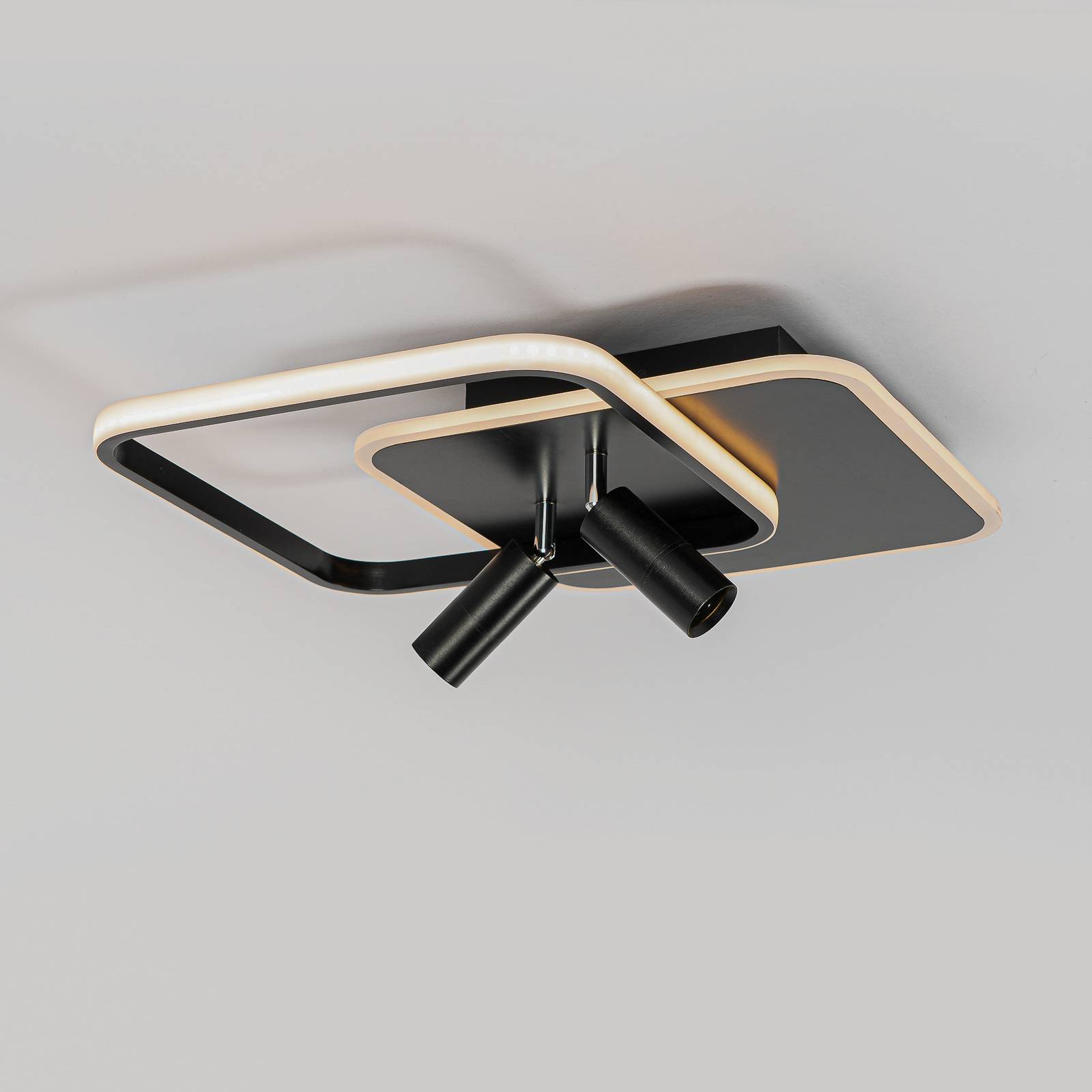 Plafoniera LED angolare Tival in nero con telecomando Questa plafoniera LED combina un'illuminazione funzionale con un design accattivante. Grazie alla sua luce bianca calda, il modello Tival crea un'atmosfera piacevole, può essere facilmente acceso e spento con un telecomando e permette di regolare la luminosità in base alle proprie preferenze. Con questa plafoniera, potrete portare la consueta qualità del marchio Lucande tra le vostre quattro mura. La plafoniera è perfetta per qualsiasi sala da pranzo, soggiorno o corridoio ed è disponibile in un impressionante colore nero. Il design moderno di Ingo Thiele esalta il concetto di arredamento personale e può svolgere una funzione decorativa anche da spenta.