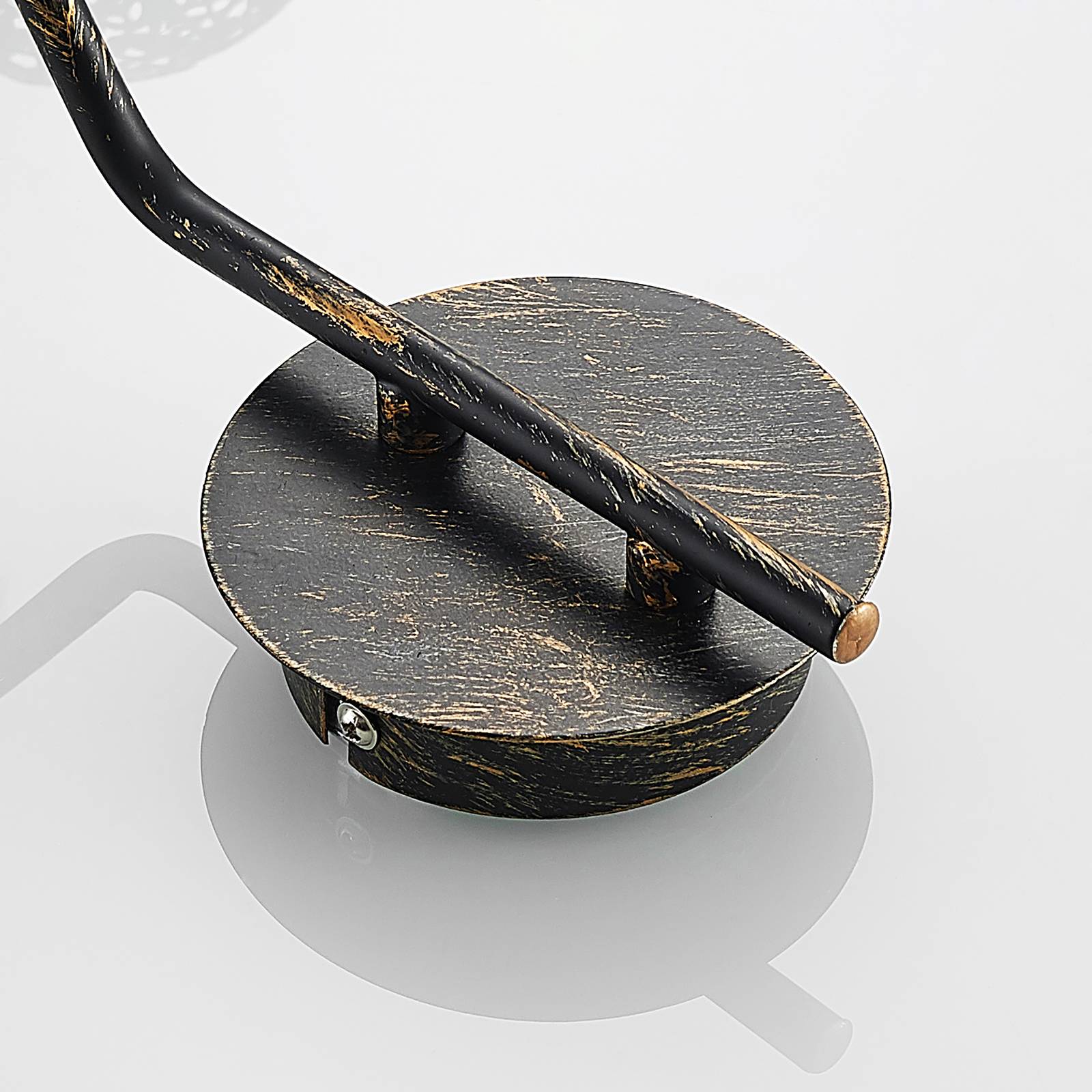 Meravigliosa lampada da parete Zale crea affascinanti momenti di luce La lampada da parete Zale è costituita da un supporto rotondo al quale è fissato un lungo braccio della lampada. Sul braccio della lampada c'è una sfera dorata, che ha spazio per una fonte di luce. L'illuminante non è incluso nella fornitura. Dato che il paralume ha dei sottili recessi, la luce penetra nella stanza solo in modo silenzioso e riceve un luccichio dorato. Il motivo crea anche affascinanti effetti di luce.