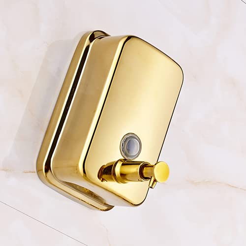 LucaSng Dispenser di Sapone Liquido per Bagno in Ottone Massiccio Supporto a Parete lucidato Oro per Hotel, Case, ospedali, bagni e Altre strutture