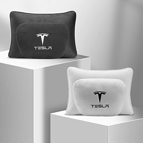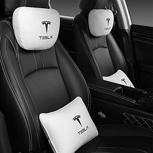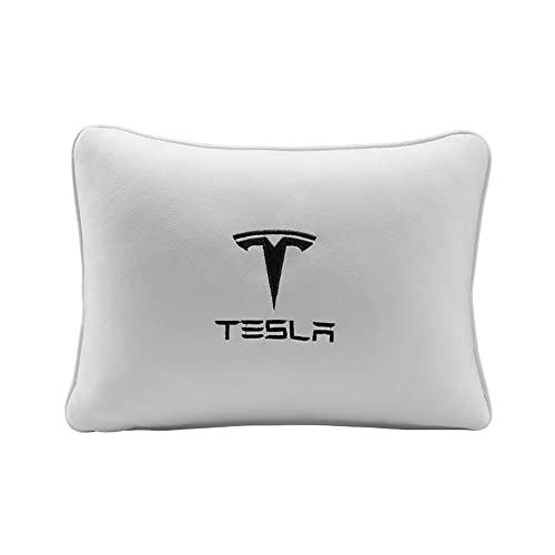LUCBEI Cuscino di Supporto Lombare per Auto per Tesla Model 3 Model Y Model S Model X Cuscino per Schiena Cuscino Lombare Emblema Ergonomico Cuscino di Supporto Lombare,White