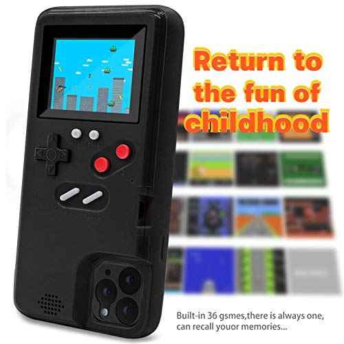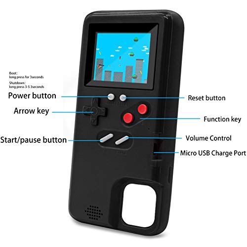 LucBuy Custodia da Gioco per iPhone, Custodia Protettiva Autoalimentata con 36 Giochi Piccoli,Display a Colori,Custodia per Videogiochi Antiurto per iPhone 11 - Nero