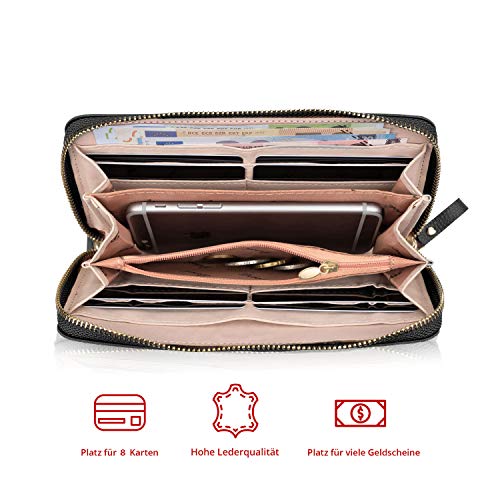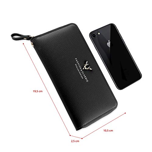 Pratico e multifunzionale: dimensioni: 19,5 x 10,5 cm, adatto per smartphone da 4 a 6,3 pollici, adatto anche per iPhone 11 Pro max. Non importa se volete portare questo grande portafoglio da donna con cerniera a una festa o per fare shopping, questo portafoglio da donna in pelle ha abbastanza scomparti per carte di credito e spazio per un cellulare, così come per molte banconote e monete