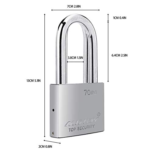Lucchetti lunghi da 70 mm per uso esterno resistente a tutte le intemperie, in lega di acciaio resistente con 4 chiavi.