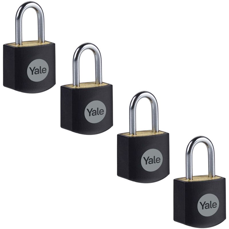 Yale Y110JB/15/111/4 - Confezione da 4 lucchetti in ottone nero (15 mm) - Serrature interne per armadietti, zaini, cassetta degli attrezzi, chiavi allo stesso modo - Sicurezza standard - Multipack