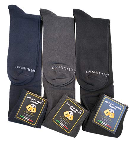 Lucchetti Socks Milano SET DA 4 PAIA DI CALZE UOMO LUNGHE CALDO COTONE COLORATE TENDENZA POIS FANTASIA FASHION MADE IN ITALY (NERO-GRIGIO-BLU)
