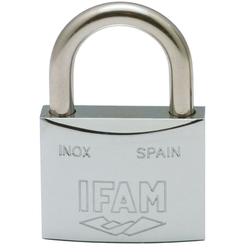 Lucchetto in acciaio inox 30. 30 mm. con 2 chiavi. arco normale. offre un'elevata resistenza alla ruggine in ambienti marini e ad alta umidità, oltre a un buon livello di sicurezza. arco normale. ifam