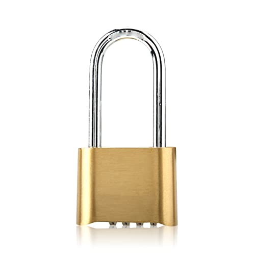 Lucchetto antifurto, lucchetto a combinazione grande in ottone con password a 4 cifre inferiore e gancio di blocco esteso per porte e finestre con chiusura a chiave, porte del cortile, porte del magaz