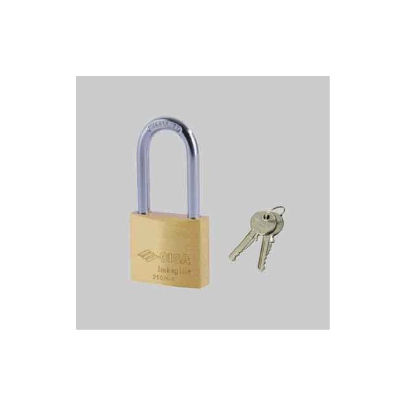 Corpo monoblocco in ottone smerigliato. Arco in acciaio carbonitrurato nichelato. In dotazione due chiavi. Lucchetto ad arco lungo 'locking line' cisa 30 mm CISA Serrature cisa