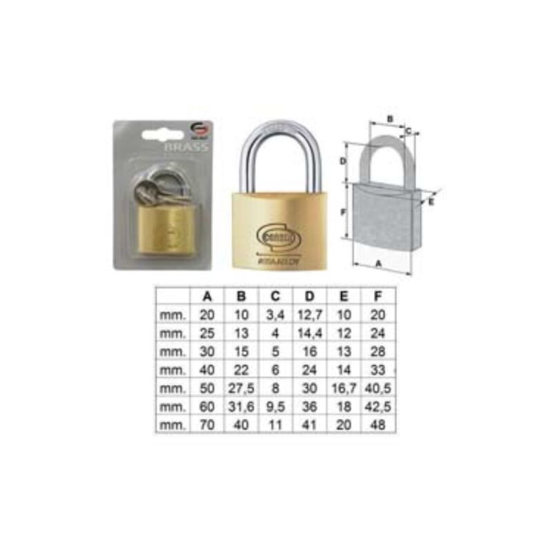 Mm.25 (pl1102600) corpo monoblocco in ottone satinato, arco in acciaio carbonitrurato, doppio scrocco da lucchetti > mm.30, spina antigrimaldello per lucchetti > mm.30, dotazione 2 chiavi Categoria merceologica: Lucchetti e accessori - Sicurezza - Lucchetti ad arco