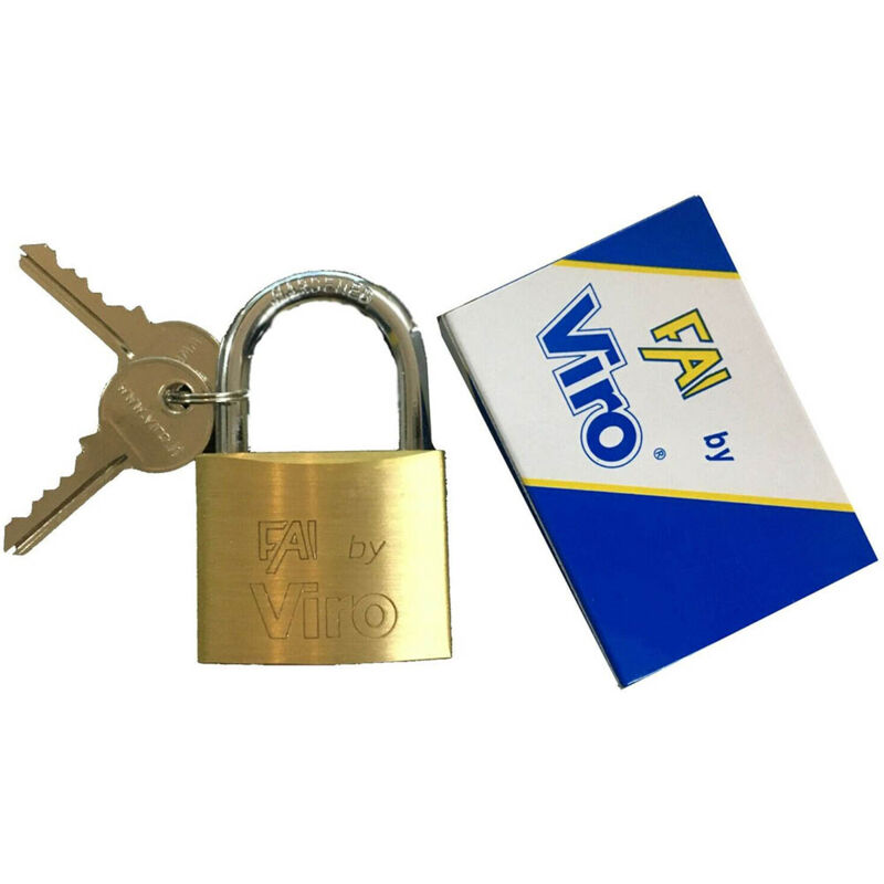 Lucchetti Rettangolari Fai by Viro con corpo in ottone massiccio satinato e spigoli smussati antiabrasione. Arco: in acciaio cementato e temprato per una grande resistenza al taglio, ramato, nichelato e cromato per una grande resistenza alla corrosione. Chiavi: in ottone nichelato, a profilo Viro, 2 in dotazione. Meccanismo: chiusura a scatto;