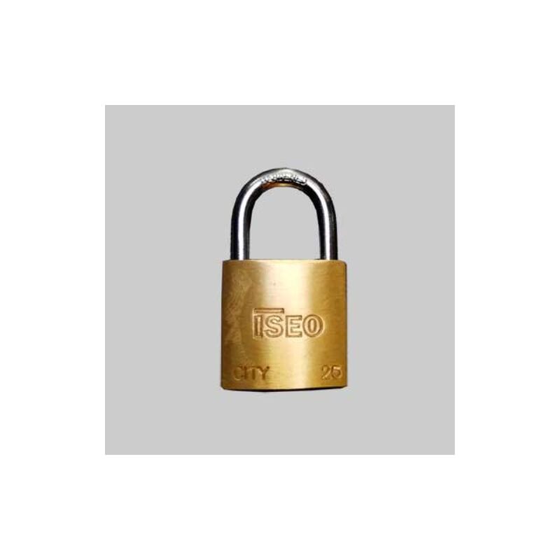 Corpo in ottone satinato e verniciato. Arco in acciaio temperato e cromato. In dotazione 3 chiavi. Lucchetto ad arco standard 'aditus' iseo 70 mm ISEO Serrature iseo
