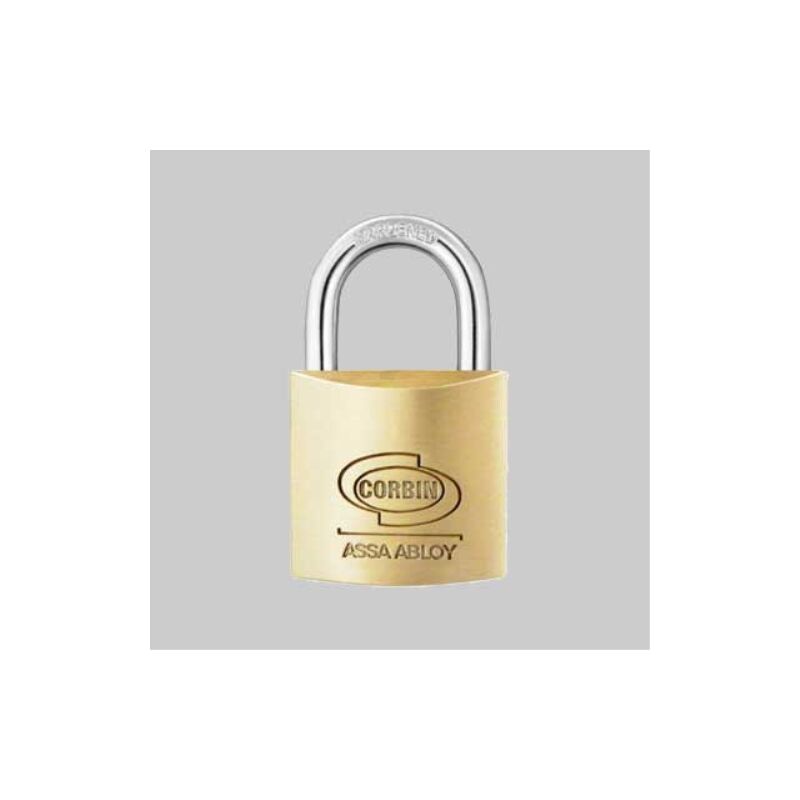 Corpo in ottone. Arco di chiusura in acciaio cementato e temprato cromato. In scatola con 2 chiavi. Lucchetto ad arco standard corbin 25 mm CORBIN ASSA ABLOY Lucchetti ad arco e corazzati