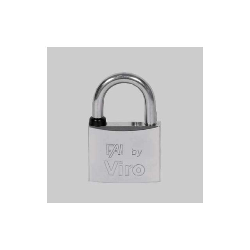Corpo in ottone massiccio, nichelato e cromato per resistenza alla corrosione. Arco di chiusura in acciaio inox. In blister con 2 chiavi. Lucchetto ad arco standard 'mare' 40 mm VIRO Lucchetti ad arco e corazzati