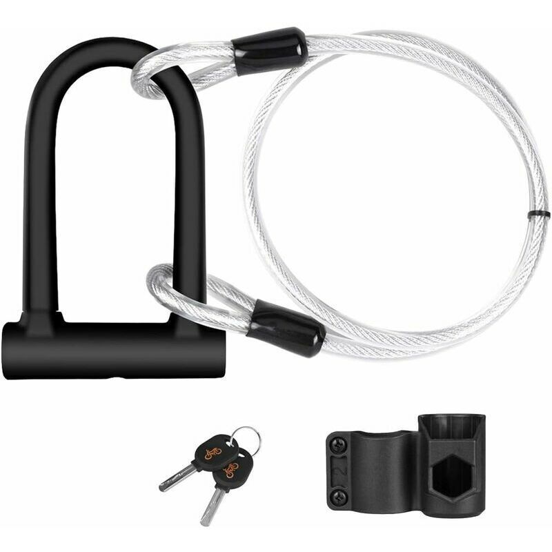 Descrizione Robusto e durevole: il lucchetto a U per bici per impieghi gravosi è realizzato con un arco in acciaio temprato dalle massime prestazioni che resiste a tagli e attacchi di leva. Più sicuro: le serrature per mountain bike cantano il nucleo della serratura in lega di zinco e la complessa fessura per chiave a serpentina contro vari modi per farlo in modo efficace. Maggiore protezione: la combinazione di un lucchetto a U per bicicletta con un cavo ad anello in acciaio può fornire una maggiore protezione per il fissaggio della ruota anteriore o degli accessori. Il cavo in acciaio di alta qualità da 4 piedi consente una maggiore flessibilità di bloccaggio. Per bicicletta, moto, elettromobile. Design e prestazioni: uno strato di gel di silice rivestito protegge il lucchetto per bici D-lock per evitare graffi. Lucchetto per bicicletta impermeabile con staffa di montaggio, nessun imballaggio aggiuntivo richiesto. Con 2 chiavi: lucchetto per bici con 2 chiavi in puro rame, ne avrai