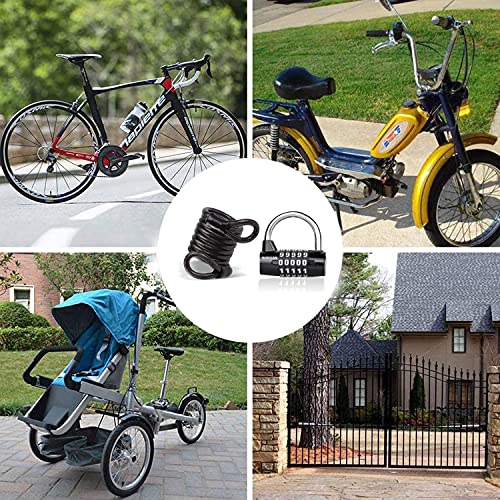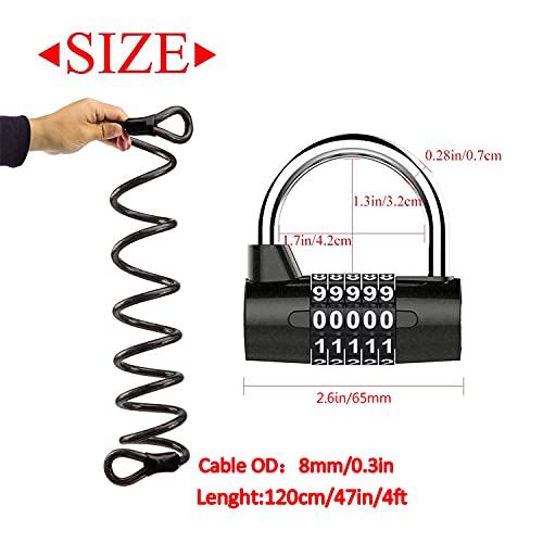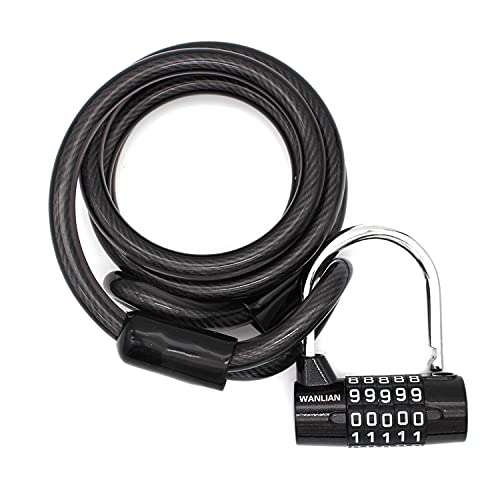 Lucchetto per Bicicletta Lucchetto Bici Catena Bici, Lucchetto per Bicicletta con Combinazione di 5 cifre, 1,2 m x 8 mm, Cavo Nero, blocca Biciclette, Scooter, Mountain Bike, Moto, antifurto
