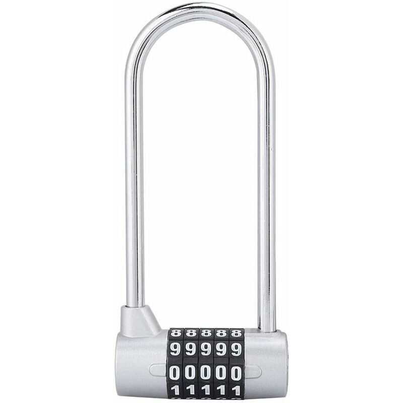 Colore come mostrato Dimensioni: 9 * 5,2 cm Peso: 110 grammi Buona sicurezza: lucchetto a combinazione a 5 cifre per aumentare la sicurezza, è più sicuro del lucchetto a 4 cifre. Ogni lucchetto può essere impostato sulla tua combinazione di codice. Hai più di 10.000 scelte di combinazione.Robusto e durevole: il dispositivo U-lock per bicicletta è realizzato in lega di zinco spessa ad alta resistenza, resistente all'usura.corrosione da acqua, polvere e sporco per prolungare la vita del tuo lucchetto.Prestazioni con ogni mezzo tranquillità e maggiore sicurezza Definizione della password: I nostri speciali corpi di chiusura in lega di zinco ad alta resistenza possono richiedere molta forza.Quando si imposta la password, premere a fondo la serratura. La password originale è: 00000. La password deve corrispondere al segno di spunta prima dell'apertura del lucchetto. Questo lucchetto a U può essere utilizzato per biciclette, skateboard, attrezzature sportive, cancelli e recinzioni