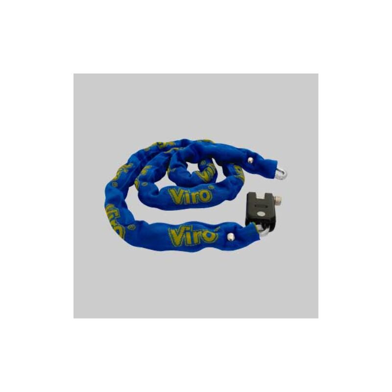 Corpo in ottone massiccio, corazza in acciaio cementato e temprato e cover di protezione in nylon. Asta di chiusura rotante antitaglio in acciaio cementato e temprato. Catena semiquadra in acciaio speciale cementato e temprato, ricoperta da guaina di protezione in tessuto. Lucchetto con catena 'supermorso' mm 7x120 cm VIRO Catene con lucchetti
