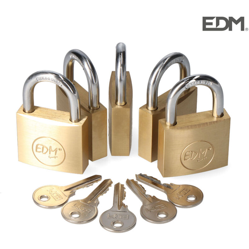 Acquista su Patner Iberia i migliori strumenti e accessori per la casa e il lavoro > Riferimento: E3/85245 Confezione da 5 lucchetti ad arco normale in ottone con 5 chiavi uguali 40X23Mm Edm