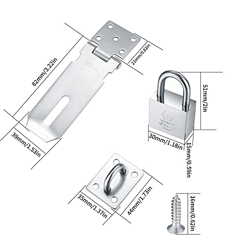 Lucchetto con Chiusura, Lucchetto Chiusura Hasp in Acciaio Inox, Chiavistello Porta con Lucchetto, Chiusura con Chiave per Porta Giardino, Lucchetto Cancello per Armadio, Cassetto