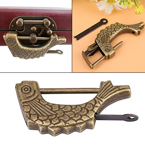 Lucchetto Cinese Lucchetto di Pesce, Serratura a Forma di Pesce in Bronzo 59 × 31 mm Cinese Lucchetto con Chiave per Cassetto, Metallo Pesce Lucchetto