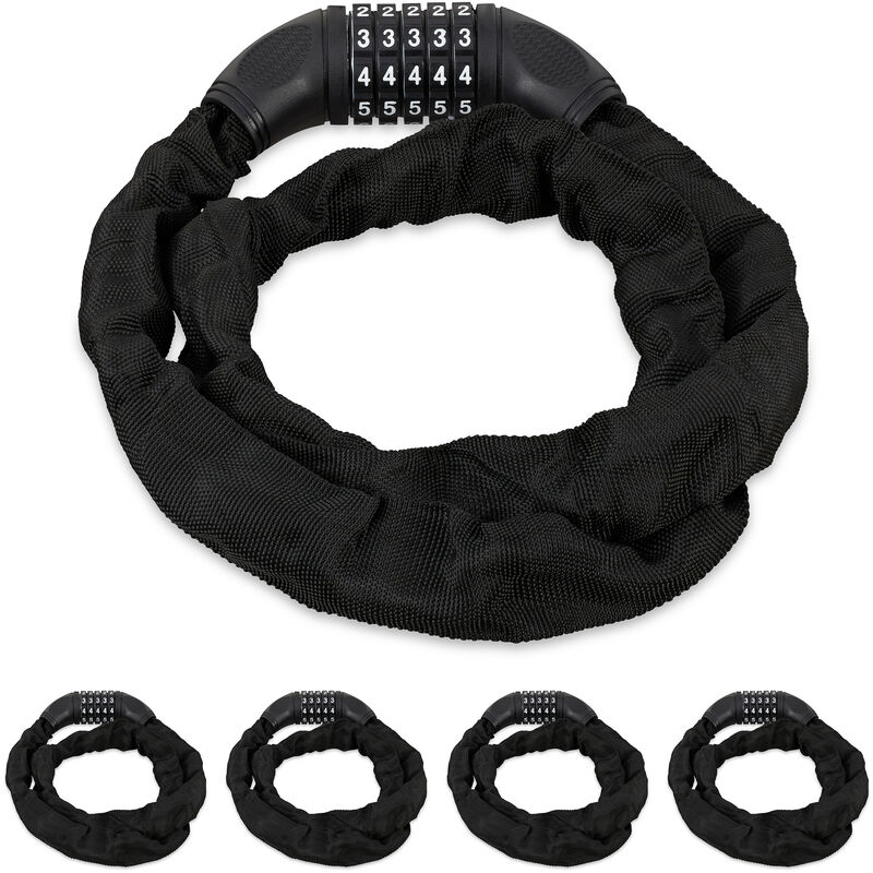 Questa catena con lucchetto a combinazione è un'ottima soluzione per proteggere la tua bicicletta dai ladri. Il catenaccio può essere utilizzato sia dagli adulti sia dai bambini. Il lucchetto si blocca e si sblocca facilmente con un codice numerico a 5 cifre, in modo da non dover portare con sé una chiave. Inoltre, la catena è molto lunga e può essere usata per chiudere più biciclette l'una con l'altra: perfetto per le famiglie! Set da 5 lucchetti a combinazione in dettaglio - Lunghezza da aperto: 120 cm ca. - Diametro catena: 2,2 cm ca. - Peso: 0,85 kg ca. - Materiale: acciaio, tessuto in PP - Colore: nero Catenaccio per bici e altro - Per mettere al sicuro biciclette, motorini e passeggini - Sicura combinazione a 5 cifre - Massiccia catena in acciaio con rivestimento in tessuto - Mai più fastidiose ricerche delle chiavi - Perfetto in viaggio o per ogni giorno Contenuto della spedizione - 5x lucchetto a combinazione - Istruzioni - Articoli decorativi non inclusi nel contenuto della