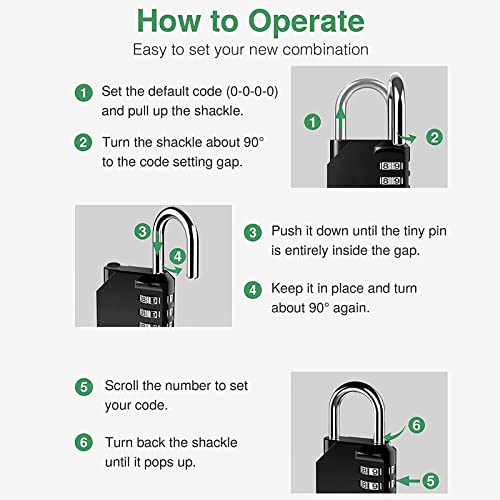 Versatili: i lucchetti a combinazione sono perfetti per lavori all'interno e all'esterno, come armadietti da palestra, armadietti sportivi, scatole di immagazzinamento, fibbie, valigie, armadietti della scuola e del personale, cassette degli attrezzi, porte e chiusure, garage, capannoni, recinzioni e armadietti vari.