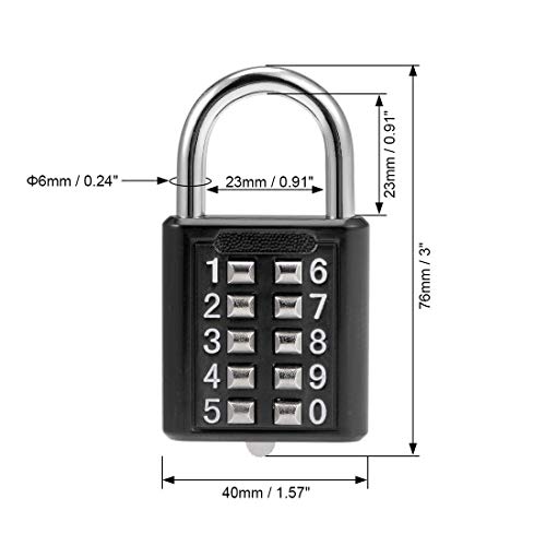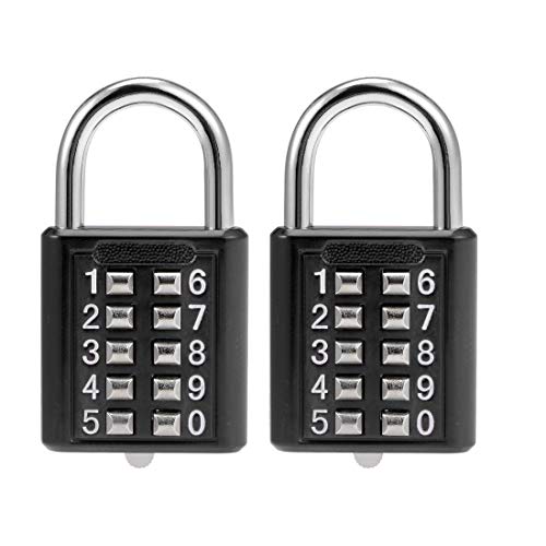 Lucchetto a combinazione con 10 cifre, pulsante a pressione, serratura per armadio, nero, 2 pezzi