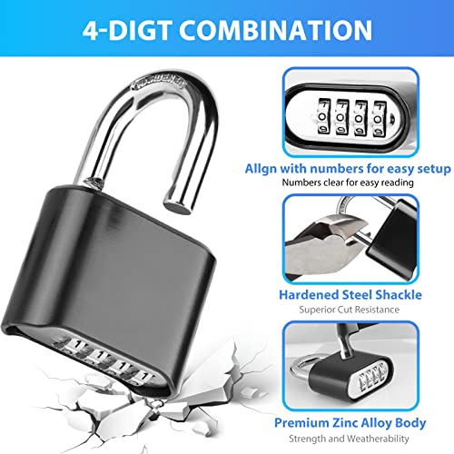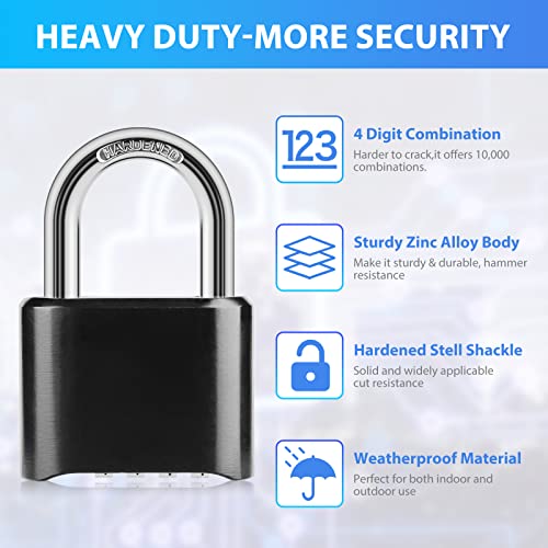 Materiali di alta qualità e struttura robusta: il lucchetto a combinazione è realizzato in lega di zinco di alta qualità. La staffa del lucchetto a combinazione è realizzata in acciaio inox, questo lucchetto a combinazione rende il lucchetto resistente alle intemperie, robusto, durevole, antiruggine, di alta durezza e non facile da deformare è resistente ai tagli e per uso esterno. Il lucchetto a combinazione è adatto per porte in diversi materiali e offre una sicurezza affidabile per la vostra porta.