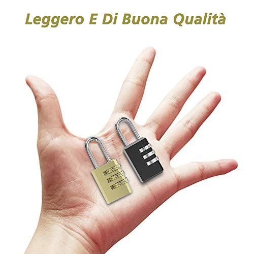 Lucchetto Combinazione, Splaks 3 cifre Lucchetto Codice Sicurezza, Lucchetto da Viaggio per Valigia,Viaggio, Borsa,Bagaglio Armadietto (Ottone +2 Nero)