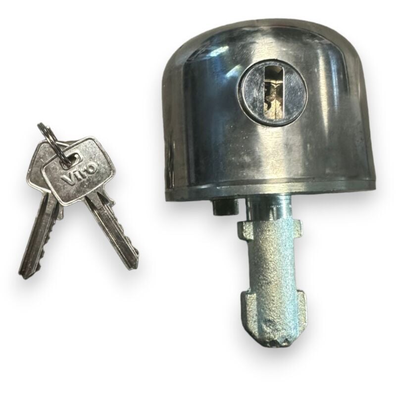 Caratteristiche: Mezza sfera Cuffia esterna in acciaio inox Corpo interno in acciaio massiccio Cilindro di sicurezza a 7 pistoncini Perno di bloccaggio con spina antitaglio