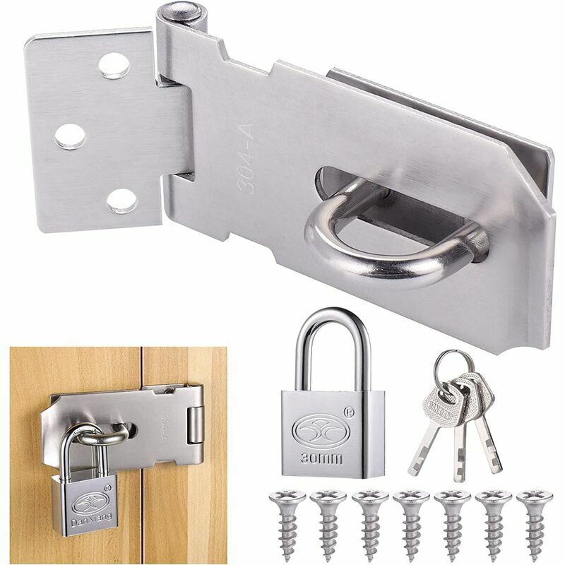 Specifiche: Materiale: acciaio inossidabile. Colore: argento Dimensioni: 100 x 35 mm / 4 x 1 0,38 pollici Diametro foro di montaggio: 5 mm Spessore: 2 mm Caratteristiche: ღ Costruito in acciaio inossidabile per impieghi gravosi per resistere alla ruggine e alla corrosione. ღ Il chiavistello del cancello è l'ideale per una varietà di luoghi della casa e del giardino. < p > ღ Aggiungi ulteriore sicurezza e tranquillità.< /p> ღ La posizione di montaggio del chiudiporta può essere regolata in base alle proprie esigenze, sia a 180 gradi che a 90 gradi. ღ Sono presenti un moschettone a lucchetto con viti e 2 lucchetti con due chiavi. Puoi usarlo ovunque nella nostra vita quotidiana. Il pacchetto include: 1 × cerniera e lucchetto 7 × viti 1 × lucchetto 3 × chiavi Nota: Si prega di controllare attentamente la tabella delle taglie prima di effettuare il pagamento. Si prega di consentire 0,5-1 pollice di differenza a causa della misurazione manuale. (1 pollice = 2,54 cm) Il colore degli