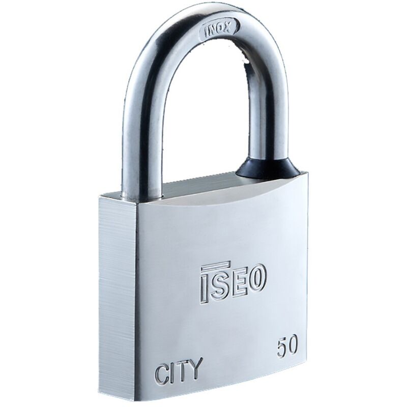 Corpo monoblocco in ottone nichelato e satinato, arco inox, anello in gomma per la protezione dei meccanismi interni. Particolarmente adatto per applicazioni esterne ed in ambienti umidi e piovosi. Completo di 3 chiavi.