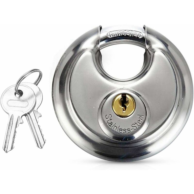 Caratteristica: 1. Realizzato in acciaio inossidabile 201, resistente e durevole, non facile da corrodere, non facile da arrugginire. 2. Forma rotonda, diametro 70 mm, pregevole fattura, design ragionevole e alta sicurezza. 3. Il cilindro della serratura è realizzato interamente in rame, con elevata resistenza e buona precisione. 4. C'è una presa d'acqua nella parte inferiore per evitare l'accumulo di acqua piovana. 5. La chiave è realizzata con materiali di alta qualità, pregevole fattura e resistente alla corrosione. 6. Adatto per la protezione di sicurezza generale all'interno e all'esterno, a casa o al lavoro. Specifiche: Materiale: acciaio inossidabile 201 Colore: argento Dimensioni: 70 mm Quantità: 1 pezzo Accessori: 2 chiavi < span class="a-text-bold ">Nota: Se hai dei dubbi sui nostri prodotti, puoi contattarci in tempo e risolveremo il problema per te in tempo. Pacchetto compreso 1 lucchetto a disco 2 chiavi