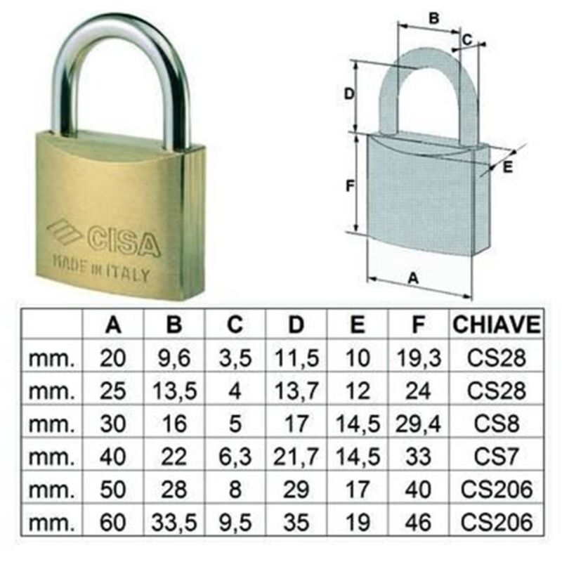 LUCCHETTO OTTONE ARCO NORMALE 22010 - mm.30 KA (art.22010300KA) corpo monoblocco in ottone smerigliato, arco in acciaio carbonitrurato nichelato, dotazione 2 chiavi