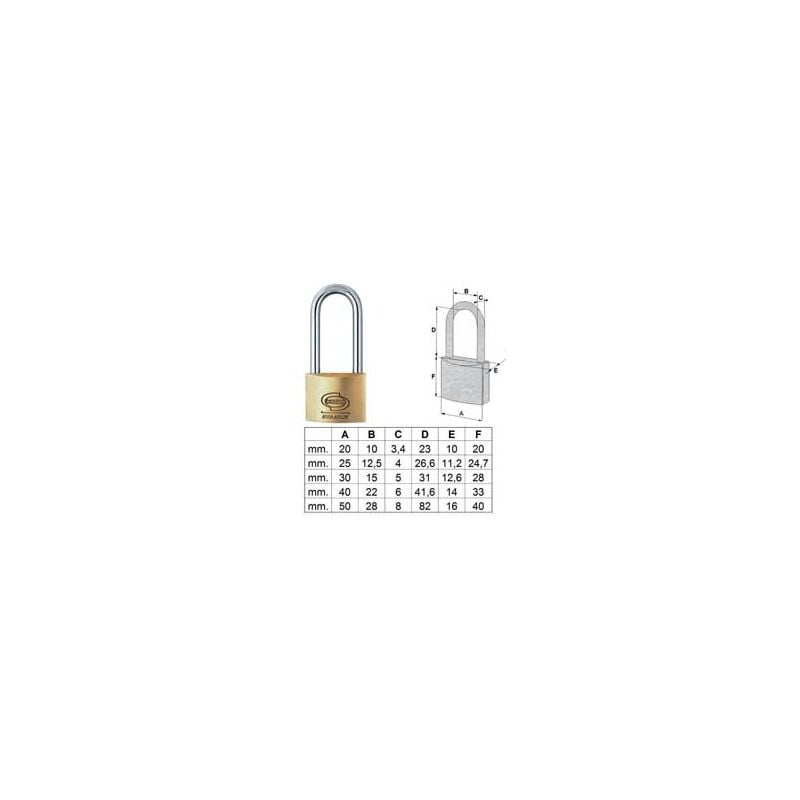 Mm.20 (pl1122000011000) corpo monoblocco in ottone satinato, arco in acciaio carbonitrurato, doppio scrocco da lucchetti > mm.30, spina antigrimaldello per lucchetti > mm.30, dotazione 2 chiavi Categoria merceologica: Lucchetti e accessori - Sicurezza - Lucchetti ad arco