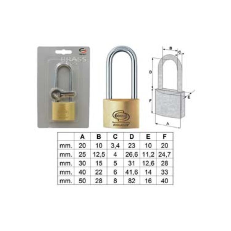 Mm.25 (pl1122600) corpo monoblocco in ottone satinato, arco in acciaio carbonitrurato a lunga luce, doppio scrocco da lucchetti > mm.30, spina antigrimaldello per lucchetti > mm.30, dotazione 2 chiavi Categoria merceologica: Lucchetti e accessori - Sicurezza - Lucchetti ad arco