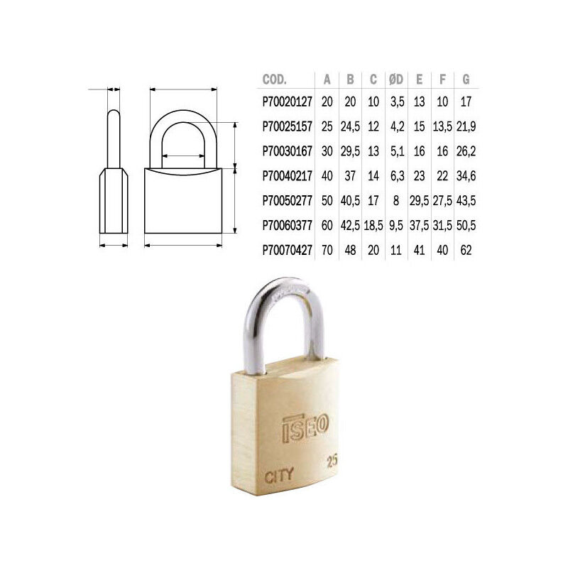 Corpo monoblocco ottone smerigliato Arco medio acciaio carbonitrurato nichelato Doppio sistema di bloccaggio arco Cifratura unica KA 3 chiavi