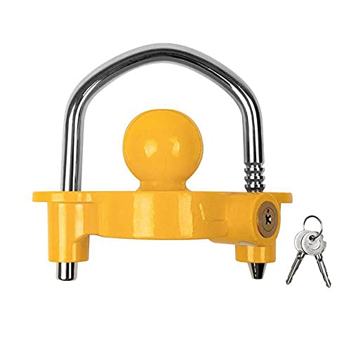 【Alta qualità】:Il blocco del rimorchio è realizzato in lega di alluminio con rivestimento a polvere gialla. I materiali di alta qualità forniscono resistenza a ruggine, corrosione e agenti atmosferici.