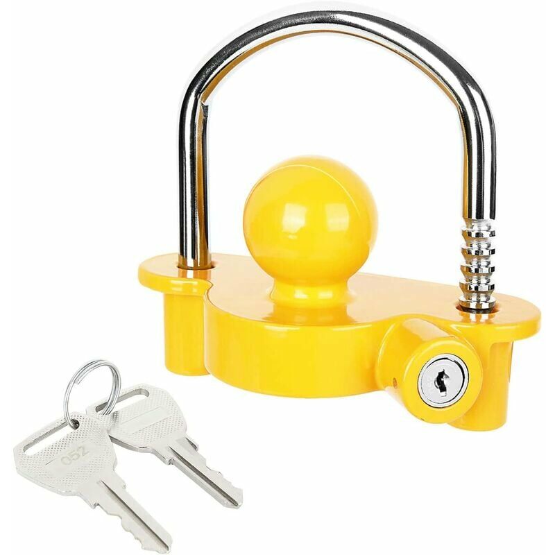 Materiale robusto - La robusta struttura della serratura del rimorchio è realizzata in ferro e lega di alluminio di alta qualità, la superficie è galvanizzata, non arrugginisce, può resistere a condizioni meteorologiche avverse, la serratura dell'accoppiatore più resistente e duratura. 【Sicurezza del veicolo】 Il blocco del rimorchio impedisce al rimorchio di essere trainato da altri quando non trainato. Utilizza una robusta struttura con lucchetto a U e un colore ad alta visibilità per prevenire il furto del rimorchio, impedendo il ritiro e il sollevamento. [Dimensioni del corpo della serratura]Φ 5/8 *150mm< /p> 【Facile da usare】 Basta collegare il blocco del rimorchio al gancio di traino, la leva di blocco a forma di U può essere regolata su e giù e fissata con una chiave, questo è comodo per il collegamento e l'accoppiamento stretto tra i due, facile da installare e rimuovi. 【Versatile】Il lucchetto per rimorchio include 2 chiavi di sicurezza e spazio per la maggior parte dei ganci