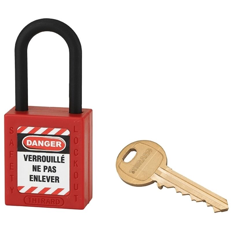 Dettagli: Meccanismo a perno Grillo in acciaio inox Fornito con un set di 3 etichette con numero di chiave inciso sulla serratura Doppio ancoraggio Colore: rosso Larghezza: 40 mm Grillo in acciaio inox: Ø 6 mm Altezza: 76 mm Applicazione: Lucchetto resistente agli urti, al calore e alla corrosione. Ideale per applicazioni elettriche. Dotazione: Fornito con un set di 3 etichette con incisione del numero di chiave sul lucchetto.