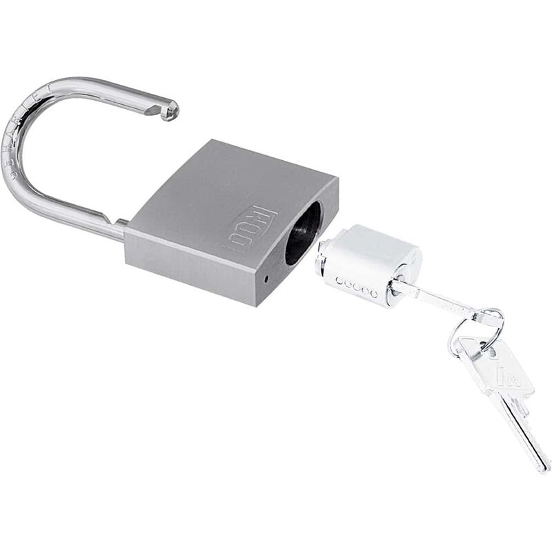 Serratura a cilindro di precisione, alloggiamento in ottone nichelato, arco in acciaio temprato, cromato e a doppia chiusura. Con inserto a bussola integrato n. art. 950050 (non per n. art. 085816) per l'adattamento / l'integrazione individuale al sistema di chiusura DOM esistente. Possibilità di dotazione personalizzata con inserto a bussola n. art. 950050 in base alle vostre esigenze. Nota: Per inserti a bussola per dotazione personalizzata vedi n. art. 950050 e n. art. 950072, Gruppo 95 Catalogo Volume 3 “Arredamento Industriale”. Dati tecnici Tipo di prodotto Lucchetto ⌀ Alloggiamento, mm 45 Materiale dell'alloggiamento Ottone nichelato ⌀ Staffa, mm 6 Staffa temprata sì Staffa a doppia chiusura sì Tipo di chiusura Serratura a cilindro Gruppo di numeri di chiusura HO 001 - 200 o sistemi di chiusura-numeri di chiusura Possibilità chiusura sistemica sì Per inserti a bussola sì Fornitura senza inserto a bussola sì Materiale staffa Acciaio